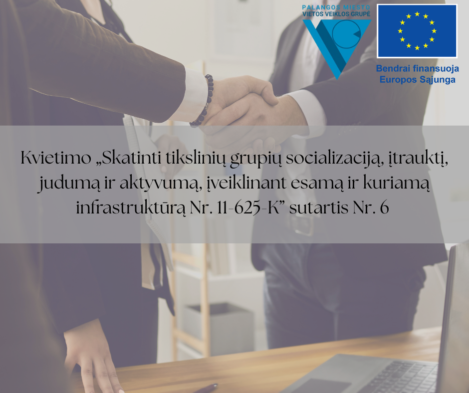 Informuojame, kad pasirašyta jau šeštoji (paskutinioji) sutartis pagal kvietimą „Skatinti tikslinių grupių socializaciją, įtrauktį, judumą ir aktyvumą, įveiklinant esamą ir kuriamą infrastruktūrą Nr. 11-625-K“. Šį… Skaityti daugiau…